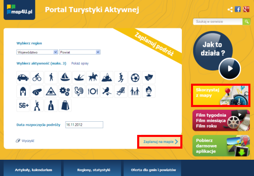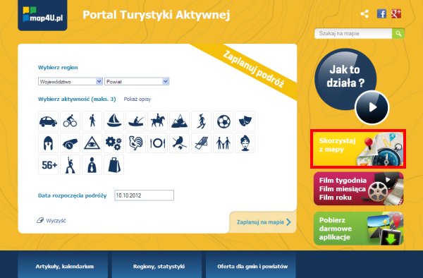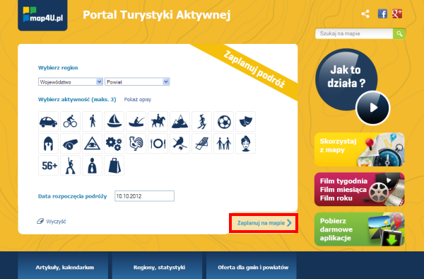 wybranie województwa i powiatu, który planujemy zwiedzać (patrz Wybierz region),